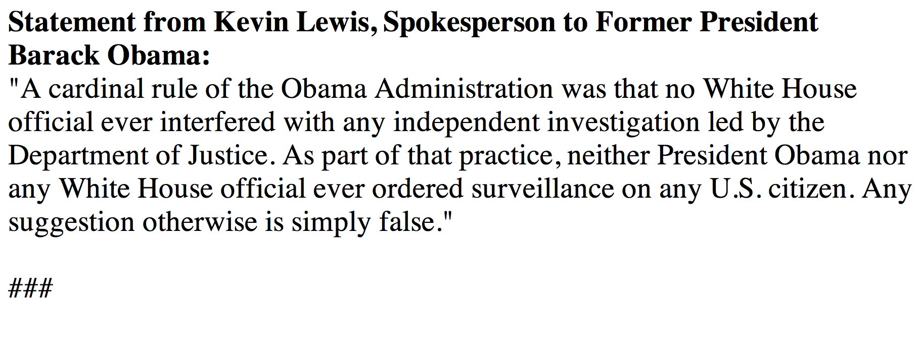 A statement from an Obama’s spokesmodel is not the same thing as a statement directly from Obama. Obama isn’t that difficult to find. Even CNN could do it, if they wanted to.