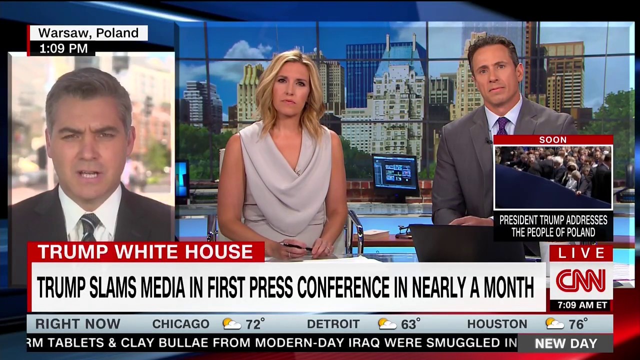 Acosta was correct in noting that Trump was putting out some fake news in that speech in Poland, but he didn’t explain it very well–opening himself up to criticism from Breitbart et al.