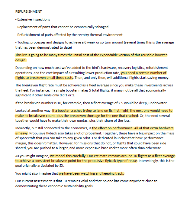 Also that “no one has come anywhere close”. Musk, on the other hand, says 2-3 flights is breakeven. In any case, they’ll likely hit 10 flights this year on their flight leaders, so they’ll hit the exaggerated and arbitrary threshold that their competitor mentioned.