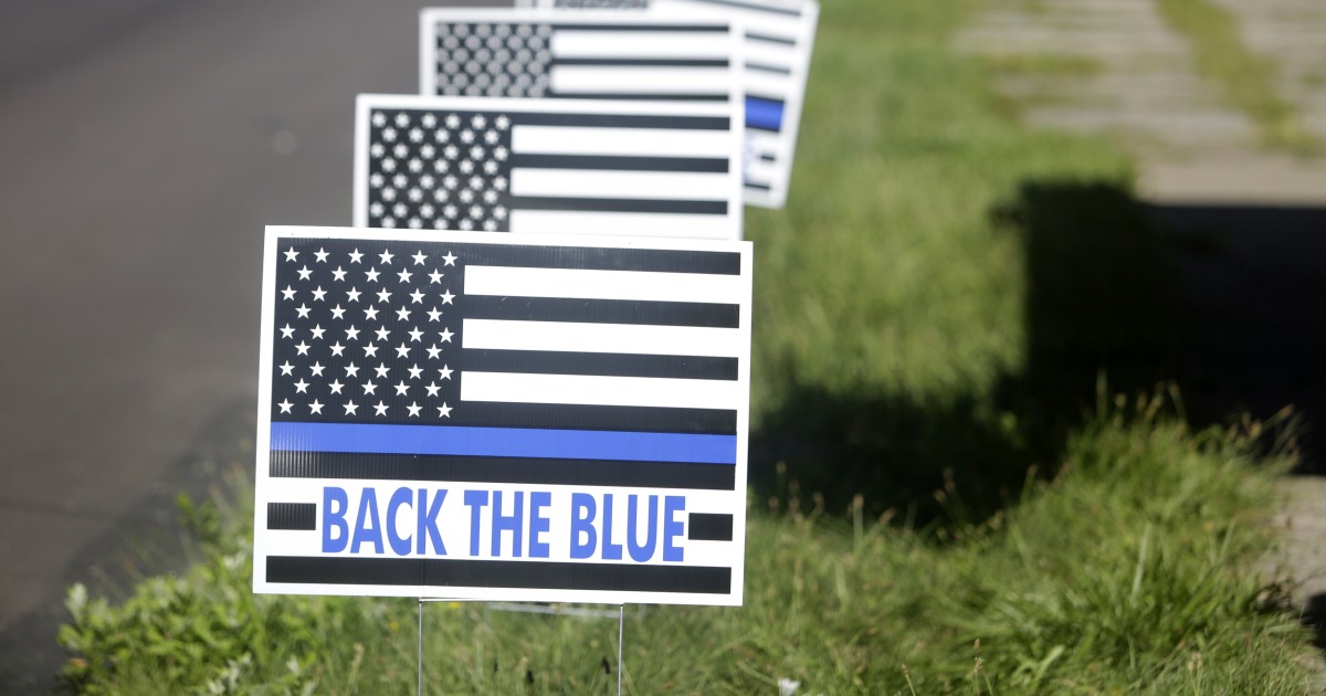 Woman arrested for a hate crime for stepping on a “Back the Blue” pro-police sign and crumpling it up.