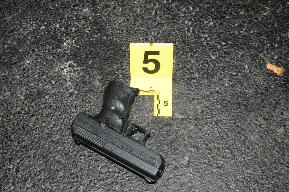 Here’s a pic of the gun at the scene with the evidence marker next to it: