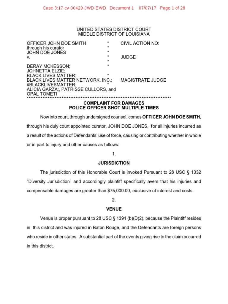 Lawyers representing a Louisiana cop who was shot by a lone gunman are suing five members of the Black Lives Matter movement, AND “#BlackLivesMatter” (as an entity, apparently) for their client’s shooting.