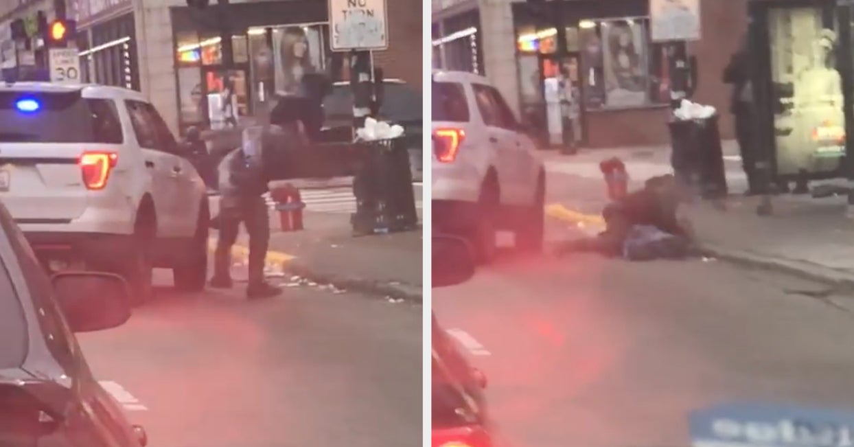 He (allegedly) spat in the officer’s eyes and mouth. That’s battery, and if true, that absolutely justifies the body slam. Police officers are entitled to defend themselves.