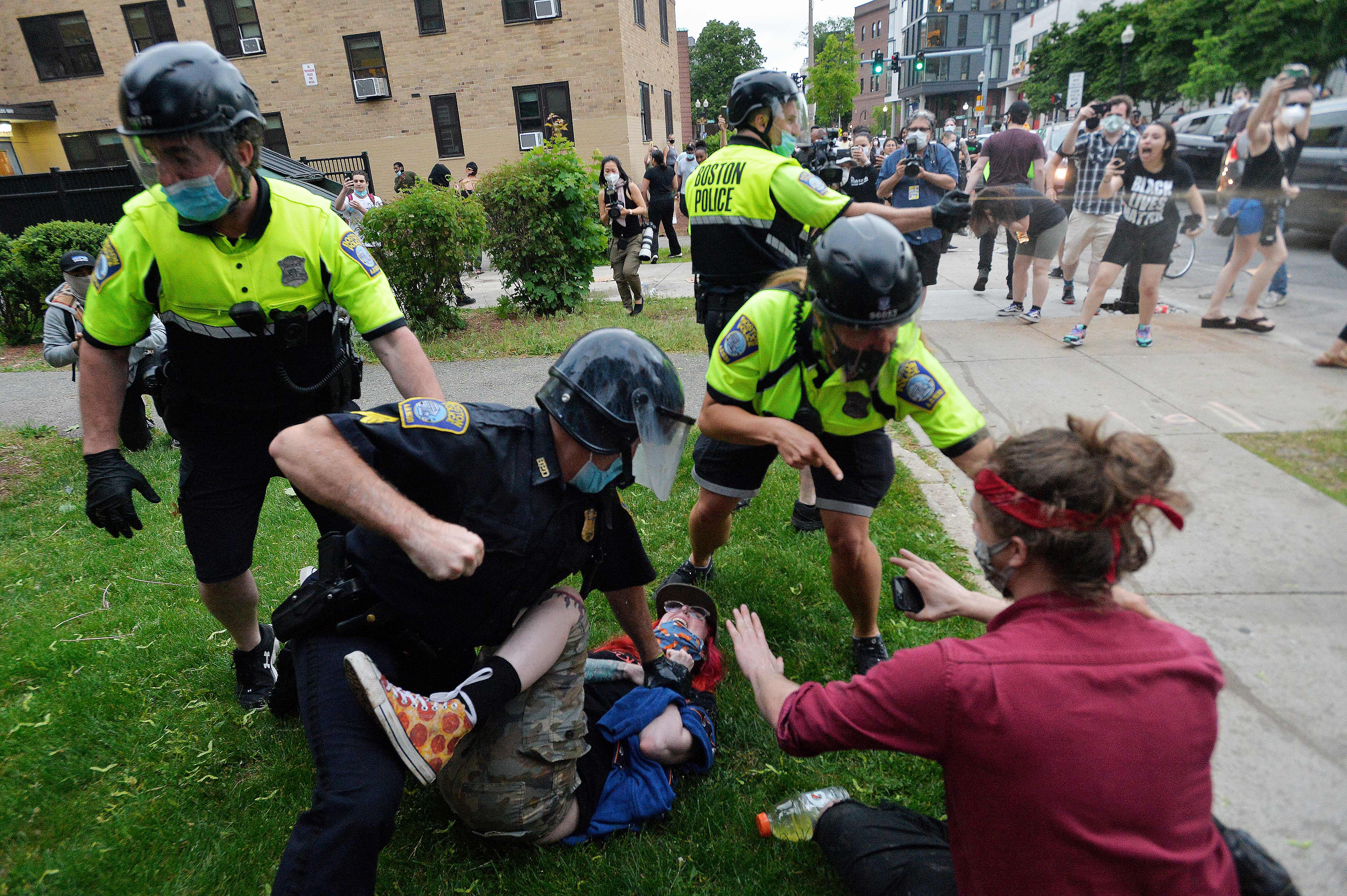 "There were protests today in Boston. It included a young woman, who is the daughter of a good friend and whom I personally know, being knocked down and hauled away by police. Her crime was using milk to wash out the eyes of people who had been hit with tear gas. She belongs to a Christian church that teaches non-violence and she’s all of 110lbs.