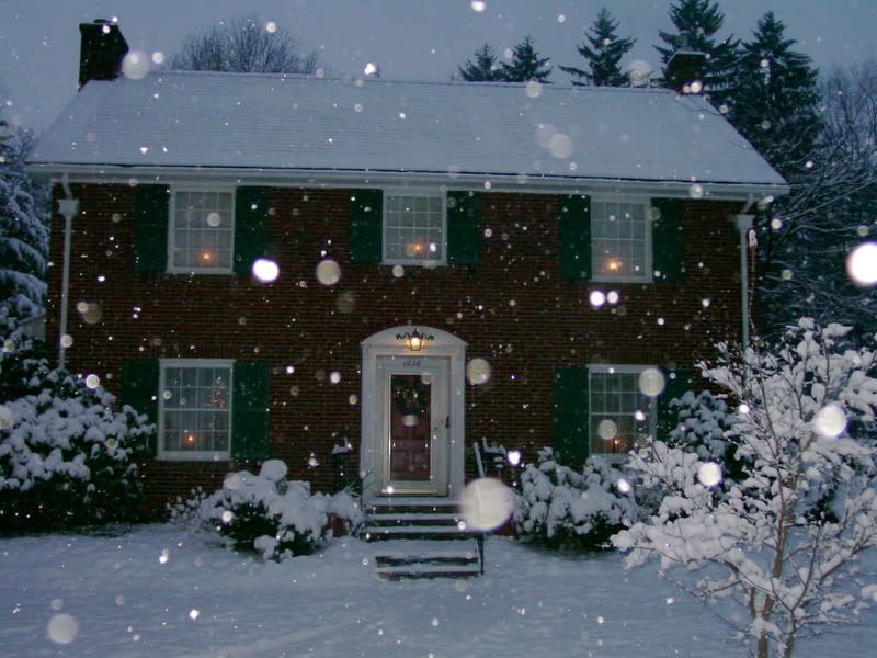 Speaking of orbs, I took this photo a few years ago on Christmas night. I really was just trying to get a picture of the pristine White Christmas snow and the window candles, but it was snowing when I took the picture, so…orbs!