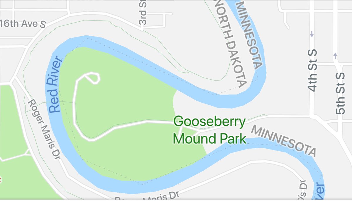 I was wondering about that. There are no land borders between MN and ND (not SD, BTW) around here that I know of. I had thought that if this happened, they might just give the land to Fargo. But I guess not! They’d either have to put a new bridge there, or you’d have to go over to the freeway (or north to one of the downtown bridges) to get over and circle around. Hard to imagine the Moorhead Parks and Rec would still maintain it as one of their parks.