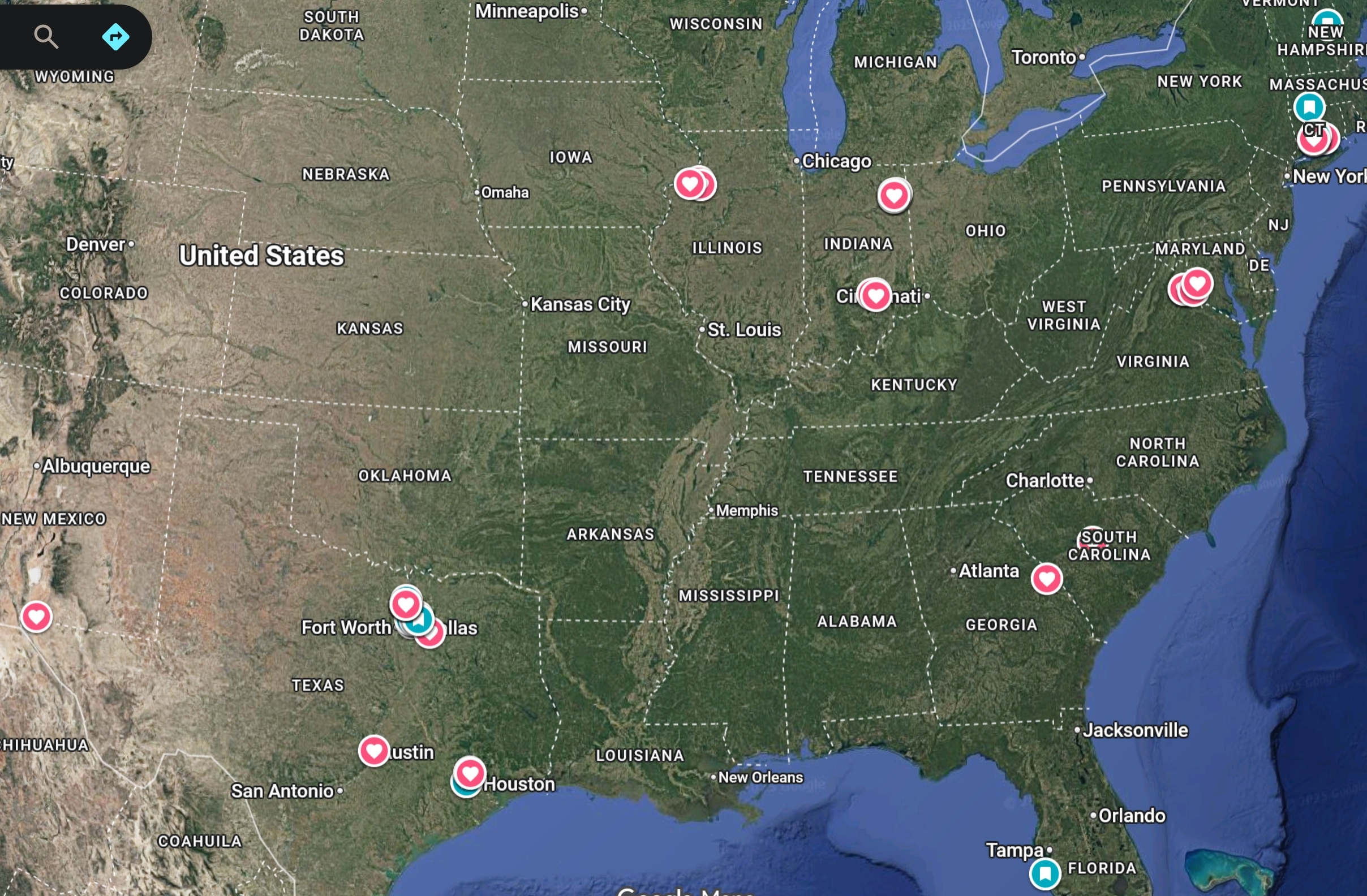 Every now and then I’ll cruise google satellite and street view looking for the places I’ve lived, worked, went to school, or just visited often, like the homes of family members where I stayed overnight more than once. Some places from my early childhood weren’t easy to locate since I was too young to know the address, and others were difficult because the official street address had changed since my time there, but eventually I managed to puzzle out most of them. Somewhere along the line I started dropping pins, and then my OCD kicked in and I had to mark all of them.