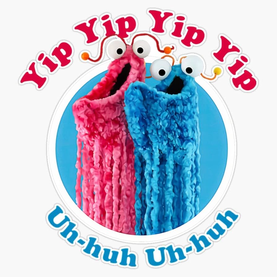 Saw YIP YIP on a small white car while out getting lunch. Maybe they have a small yappy dog?