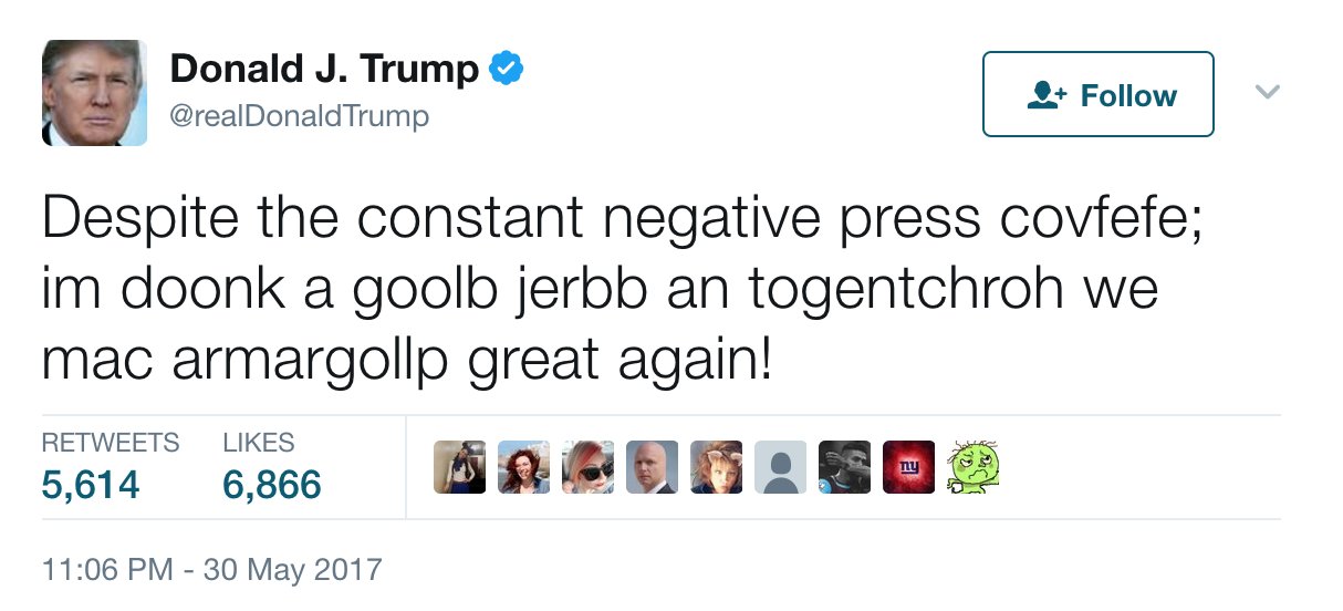 (Didn’t Billie Joe McAlister throw covfefe off the Tallahatchie Bridge?)