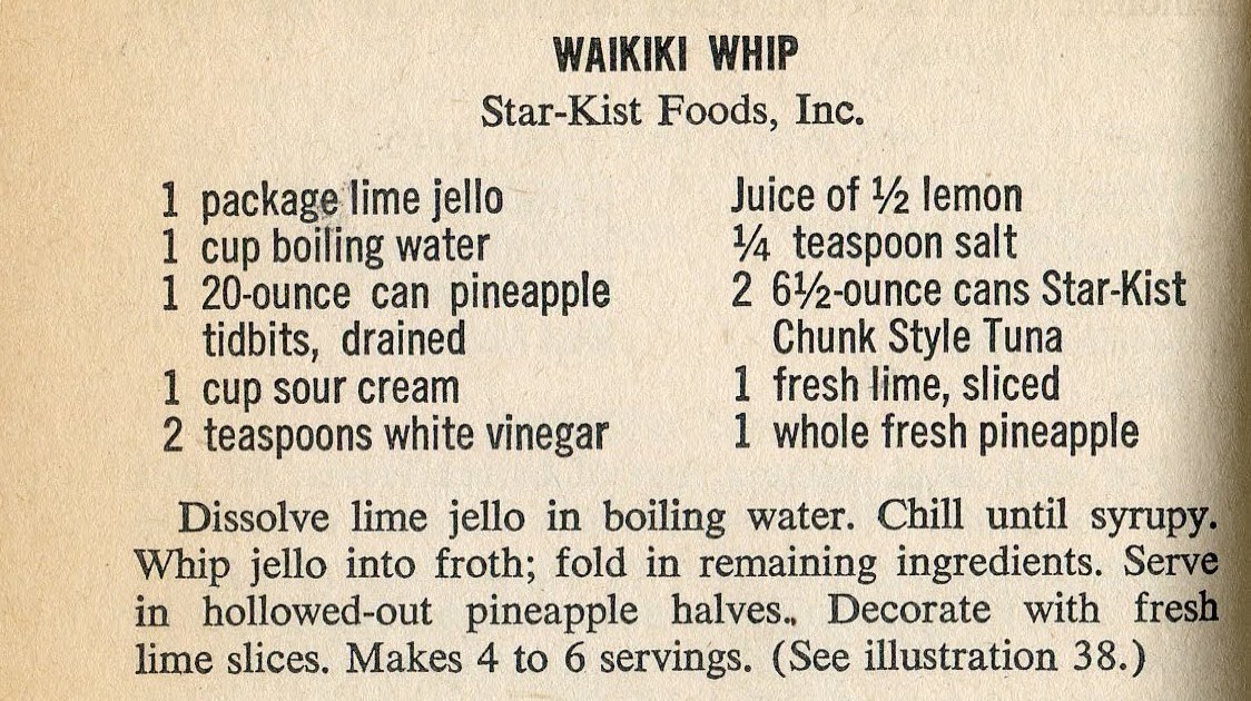 This is a vintage recipe that calls for sweet lime jello in a tuna dish!