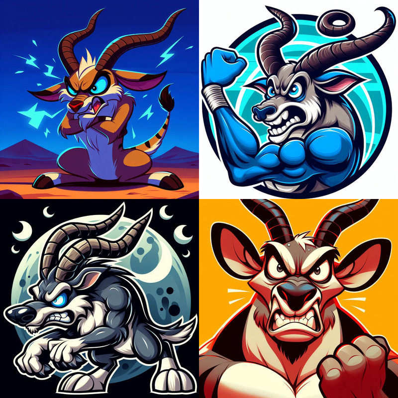 An angry anthropomorphic antelope in the style of Bluey
