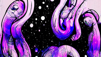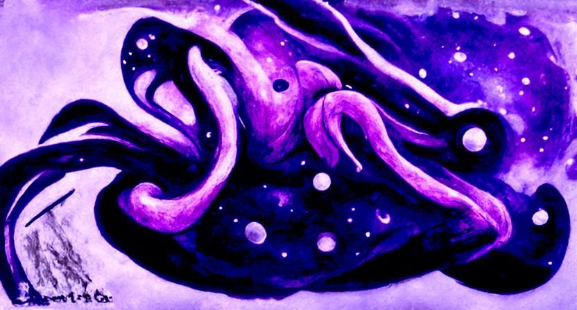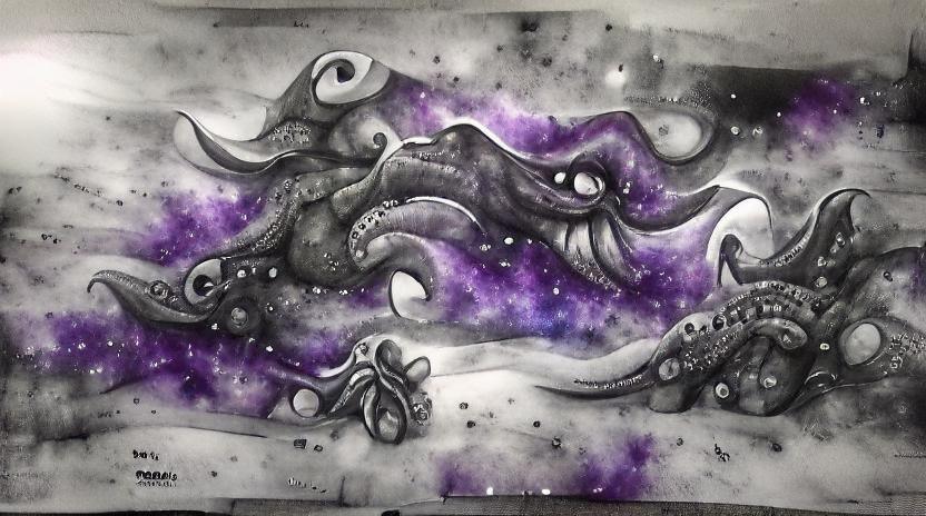 Cosmic Kraken | squid | galaxies | purple | grayscale | ink washes | beautifully lit | 8k