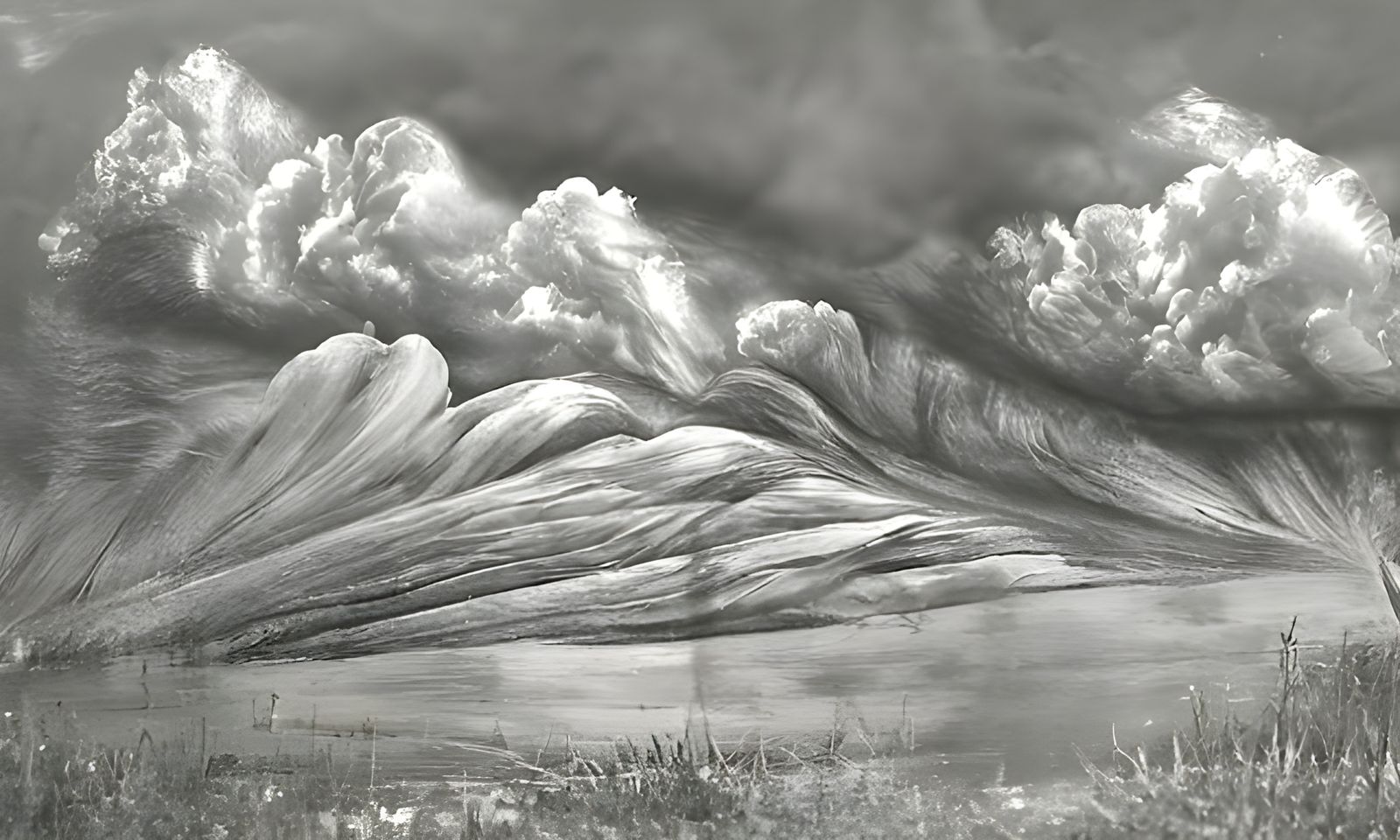 Then I tried “cloud shaped like” including a duck, a bat, and a screwdriver. Those were failures, too, a half-assed coating of clouds around poorly-detailed versions of the objects. Then it occured to try a normal set of mods with “style of cloud photography” added in. I went with one of my yokai portrait prompt sets: