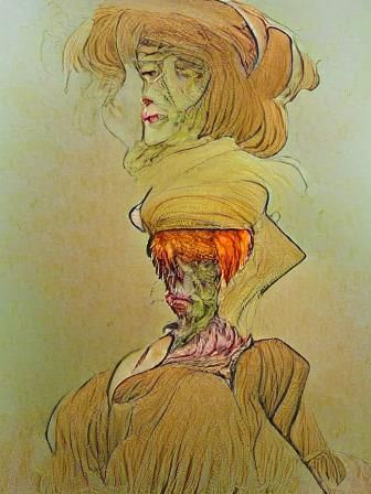 Zombie Woman | Style of Henri de Toulouse-Lautrec, Belle Epoque, Colored Pencil, Highly Detailed