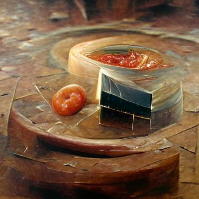 OK, I guess the apricot is sort of a circle, and the slice of chocolate cake wearing a veil is sort of a square, but where did the Slim Jim and the bowl of apricot jam come from?