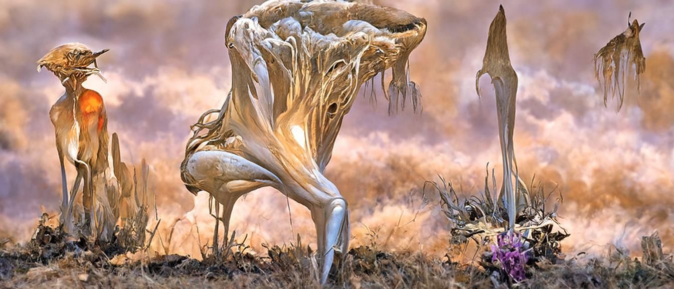 Something organic and moist with sphinctery, eyebally, and lippy parts | style of Zdzisław Beksiński