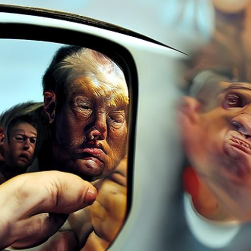 I present, Donald Trump lunging at my steering wheel in a rear view mirror.