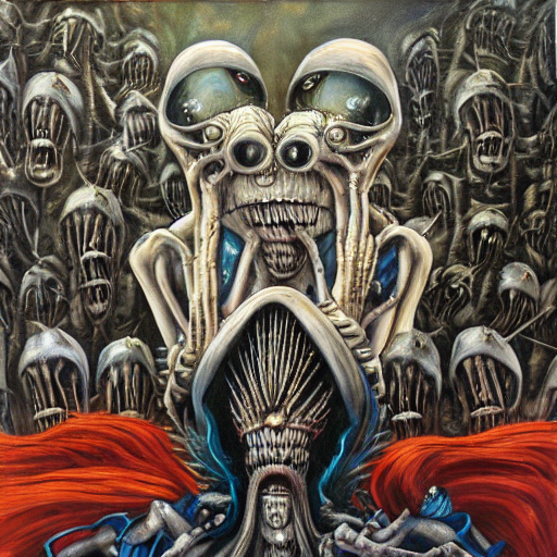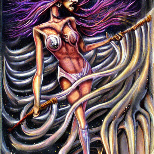 Eldritch Cheerleader Carwash, oil painting, by H.R. Giger