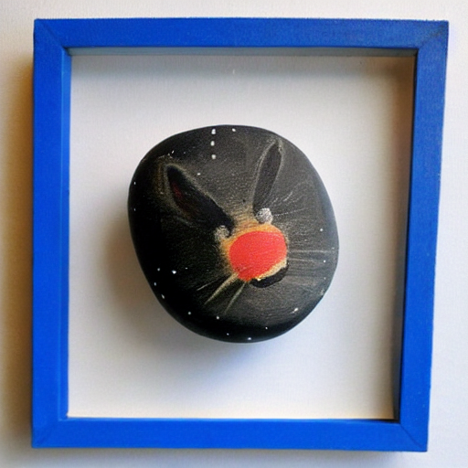 Still playing with min-dalle. I tried “pet rock” and it indeed generated some rocks that had bits of “paint” on them. I wanted them to be more elaborate so I tried “painted pet rock”. That was more detailed, but after looking at a number of images I realized that there was a theme—it was making paintings of pets. So “painted x rock” is a prompt. I have tried a number of variations, here’s a sample: