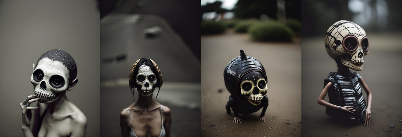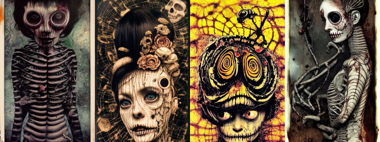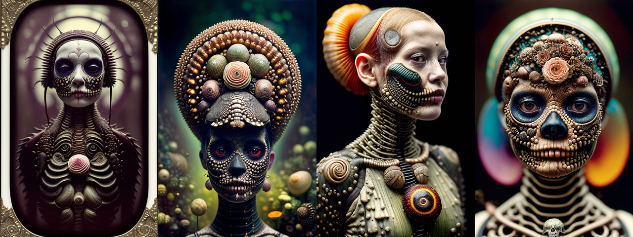 Calavera snail trilobite girl | dry cracked mud gothic horror | by Junji ito, Toume kei, Dan Witz, Mark Ryden, Margaret Keane, Pino Daeni, Mab Graves, Carne Griffiths | Polaroid, Kodachrome, Ektar | Professional photography, bokeh, natural lighting