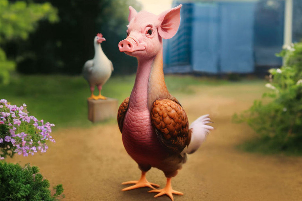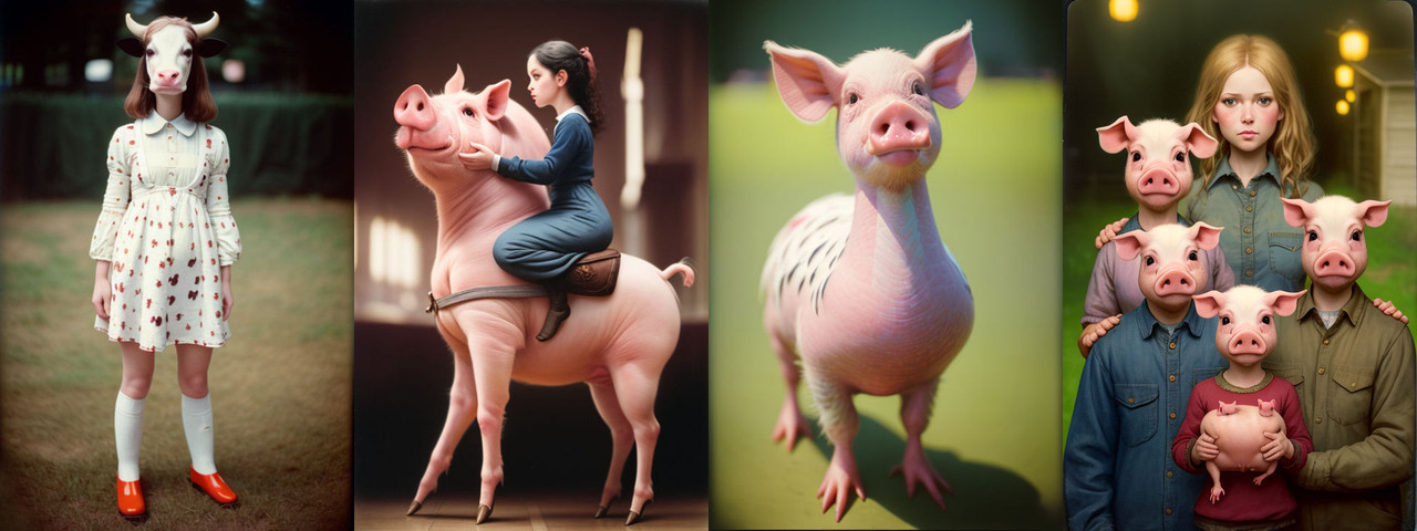 I don’t remember the exact wording of the prompt, but it would have been more complex than that. I’ve been working with barnyard animals. People riding animals, people combined with animals, animals combined with animals. Pig works better than cow.