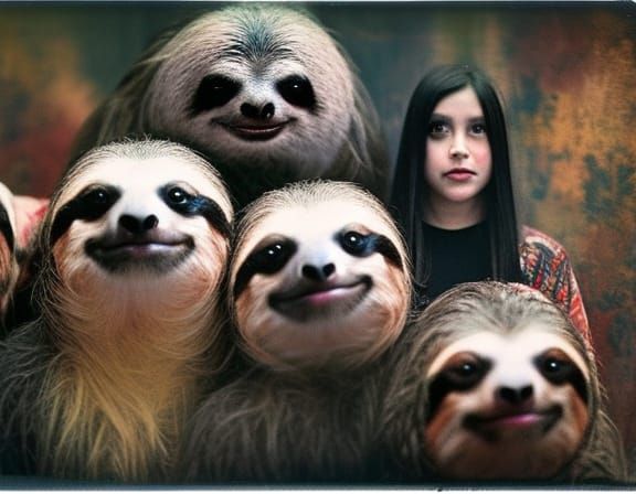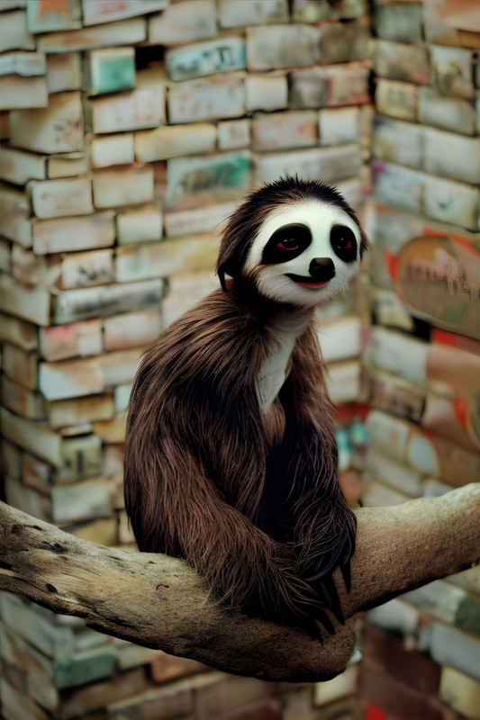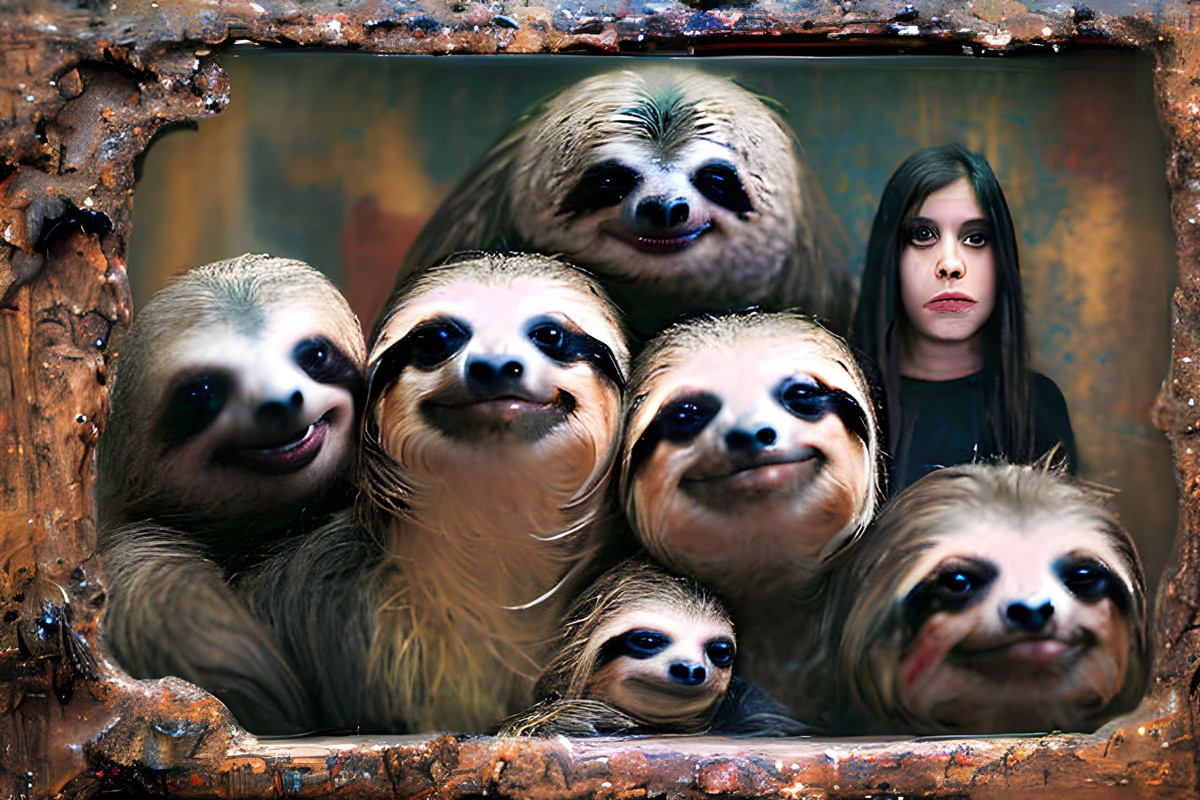 Today’s Night Cafe challenge is “sloths”. Often I have some awesome image fitting the challenge that really was made with Stable Diffusion, but created at Playground or in an old throw-away account so I couldn’t submit it to the challenge. This time a first version of a favorite sloth image happened to be available for submission: