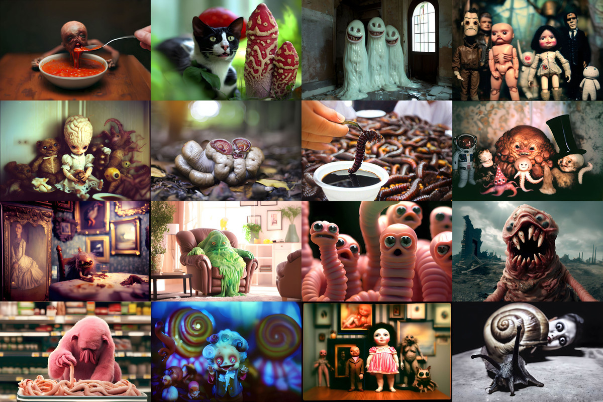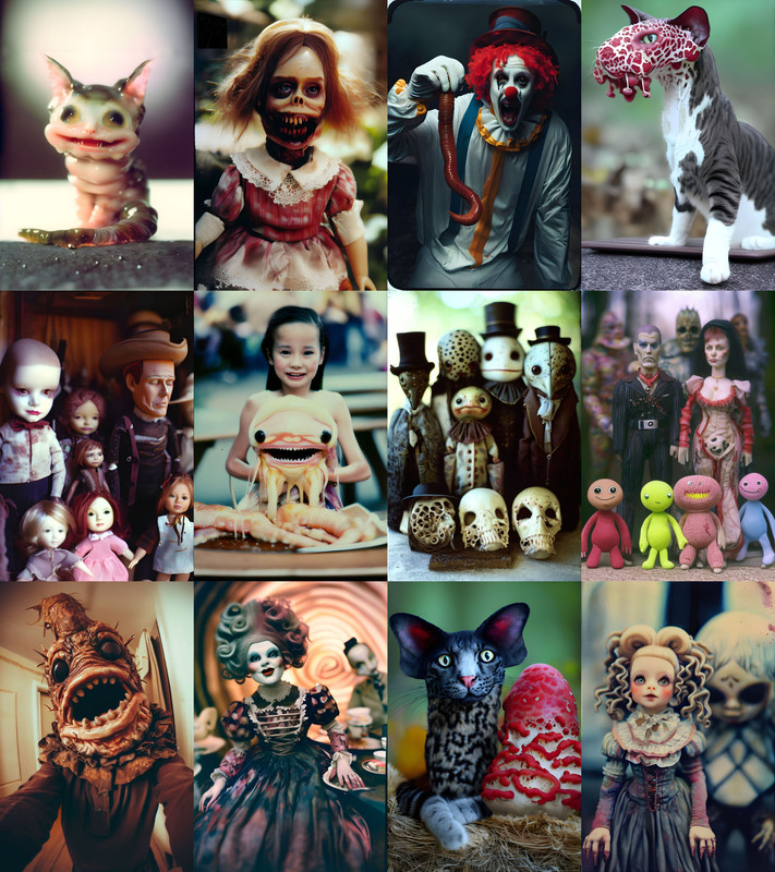 Okay, here are a few Bing/“Dalle 3” images. I’ve made thousands of them with a wide variety of prompts but have widened only a small fraction of them, and this is a subset of those, in a small number of themes (heavy on the “creepy dolls” because it is good at creepy dolls). Bingdalle is capable of creating very distinctive images unlike any of the other AIs (including Dall-E 2) and in some ways approaches MidJourney quality.