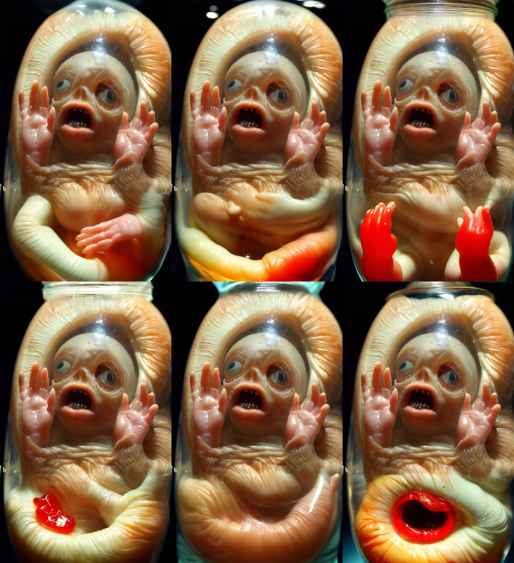 And trying a few more square snail human hybrids, it is really bad at that, at least. When handed head and upper torso images, instead of creating a lower torso it just doubles the upper, sometimes including the face.