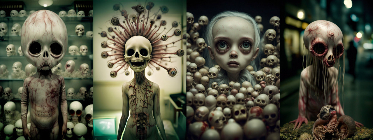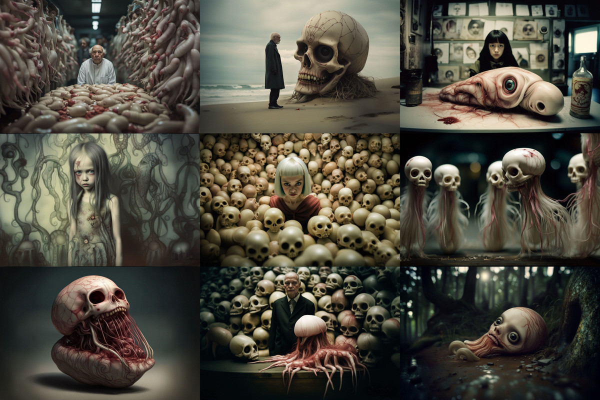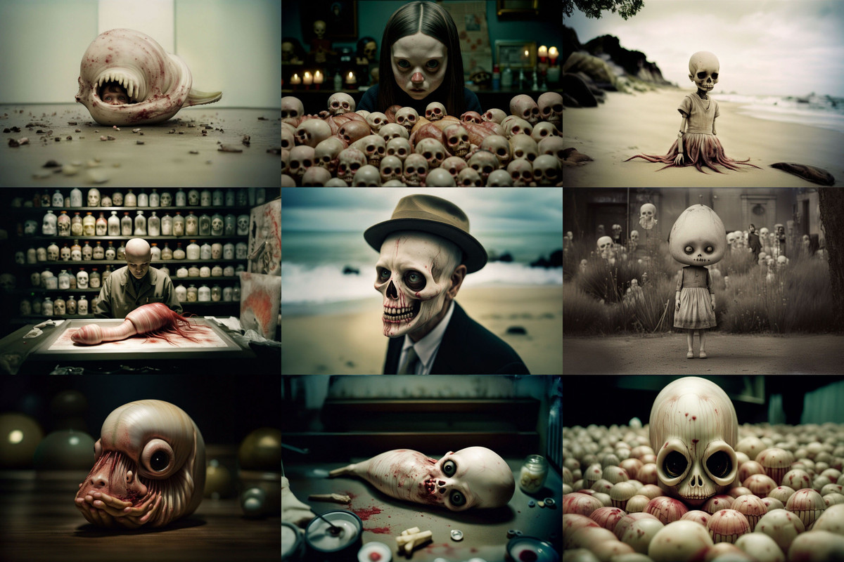 I’ve been getting really great weird results from SDXL 0.9. All of these started out square and were expanded, with some having other editing done.