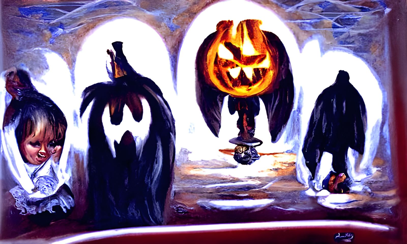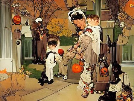 “Halloween children trick or treat” in oil painting style should produce a nice wholesome Rockwellesque image, right?