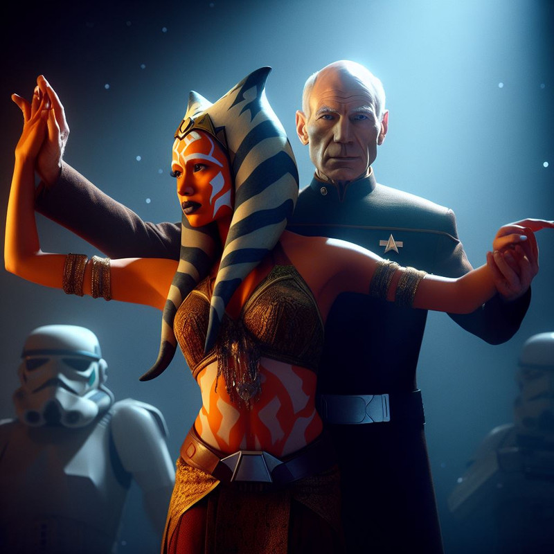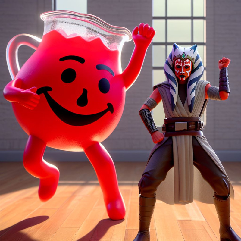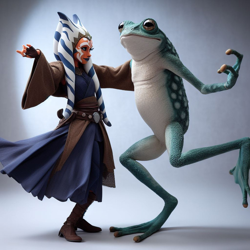 DE3 does a pretty good job with “realistic photo of Ahsoka Tano dancing with x” (though it often tries to show them as action figures with seams at the joints).