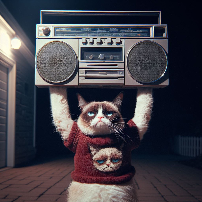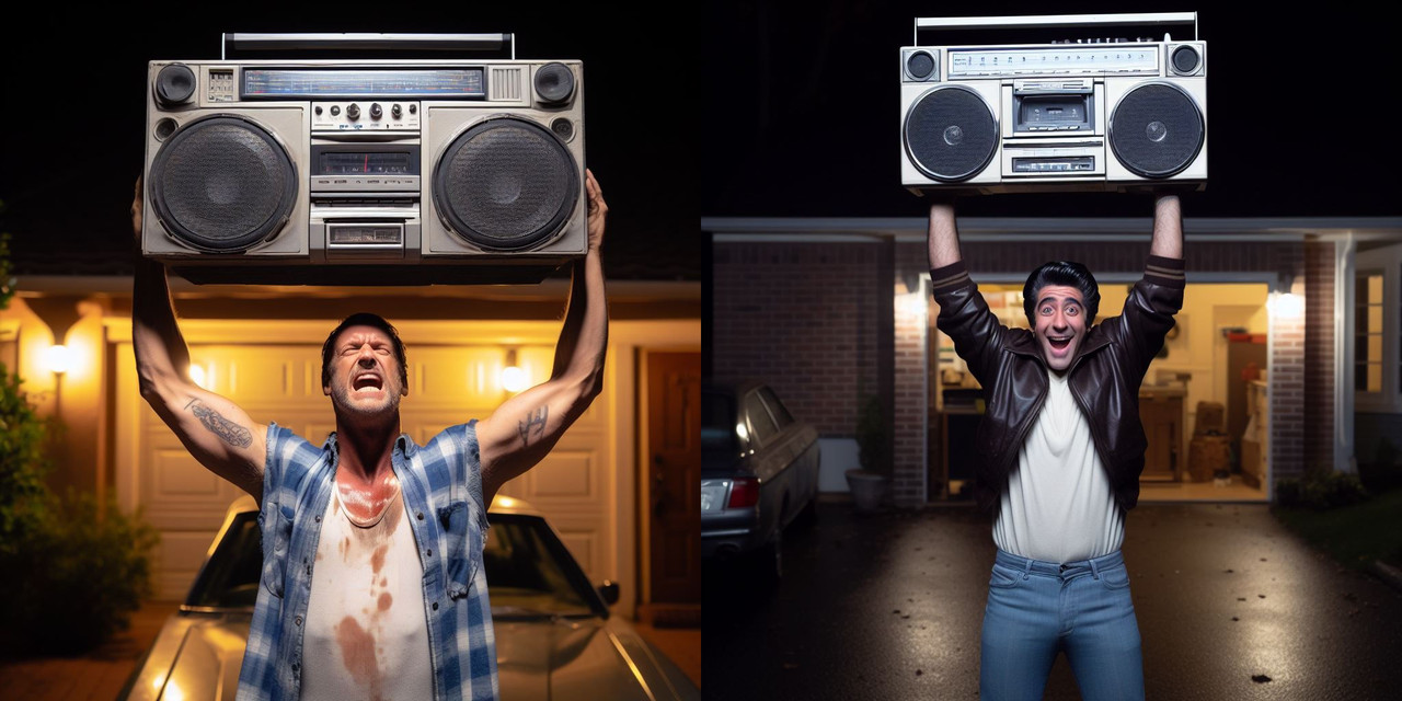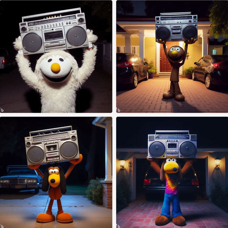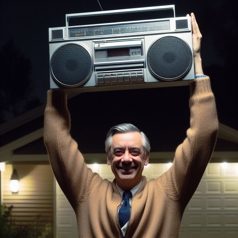 For the past couple of days I’ve been doing an insane number of images of characters doing the Say Anything pose whenever somebody occurs to me. Sometimes Bing is amazingly good at understanding the character, sometimes it is totally clueless.