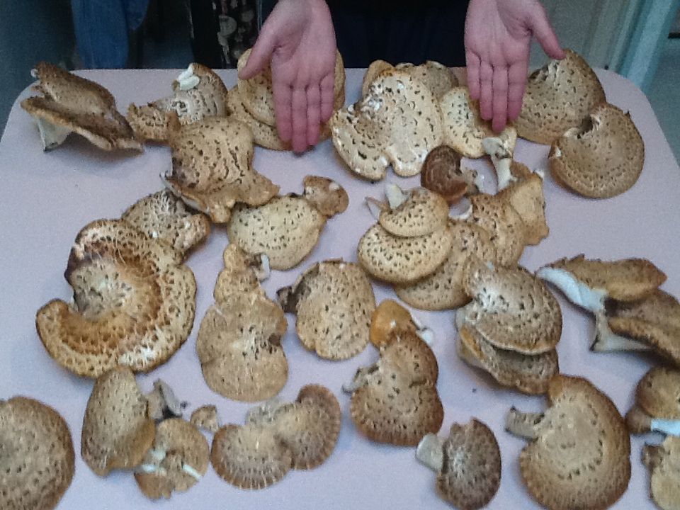 Dryad’s saddle is a polypore mushroom that can be found in the spring in Western PA. My gf found a ton of them last spring, so she went back to the same location today and again hitthe mother load.