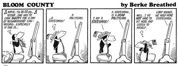 Besides, Bloom County taught me a valuable lesson. The difference between a politician and a statesman.