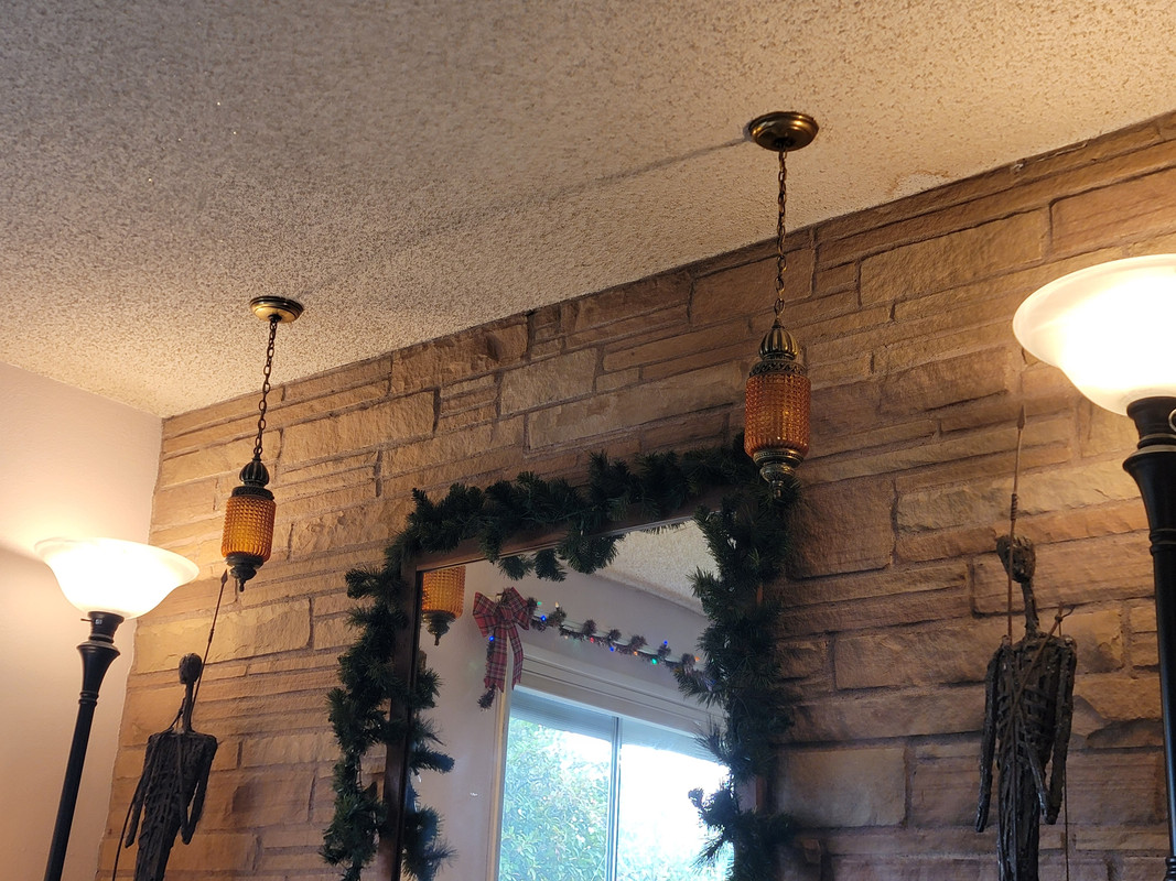 I like the amber glass too, and they match two built-in pendant lights we have over the fireplace: