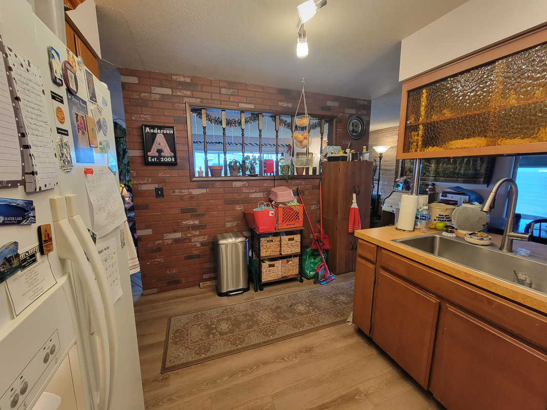 My wife and I agree removing that and restoring the original drywall would lighten up the kitchen immensely. The “brick” is just 1/4" thick fiber board with the brick pattern pressed into it. We have no love for it at all.