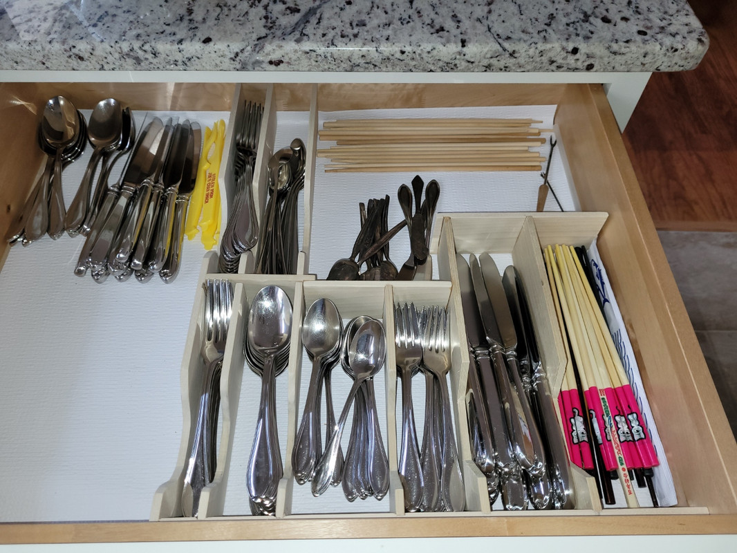 I’m working on a drawer organizer for the flatware and serving utensils. Custom made to fit our stuff will be nice in the long run.