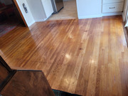 Touching up little things in the new kitchen. This morning I lightly sanded the wood floors just beyond the kitchen & foyer and did a light touch-up with stain. It looks much better, though far from perfect. Eventually we’ll have professionals come in and refinish the LR & DR floors. No hurry though.