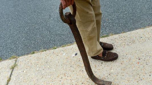 This fulcrum is for lifting pipes… You put the sharp end under one end of the pipe, and lever it up, and then the pipe can be shifted more easily.
