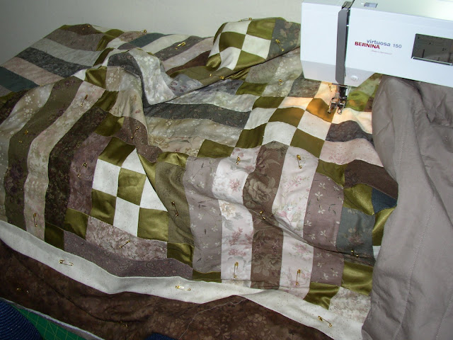 I’m working on this quilt, which is made from a collection of Japanese-style taupe fabrics and an acid-green silk/cotton as an accent. I am very excited about this project; I’m in the quilting part now.