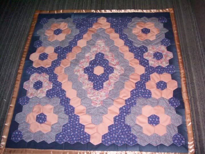 I had enough warmth from the overlapping backs of the hexagon segments and the dense cotton backing so I wasn’t concerned with the batting.