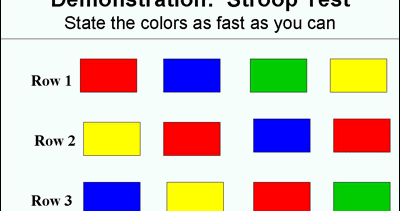 If you are presented with a color word printed using a color different from the one denoted by the word, you will usually take longer to identify the color the word is printed in.