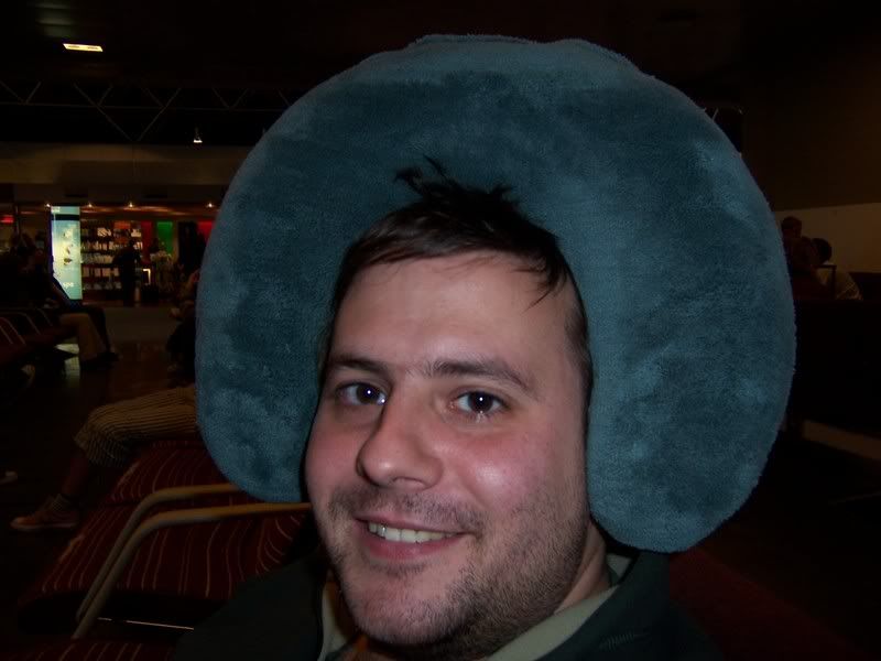 Not a hat. It’s a neck pillow. I just missed by a few inches.