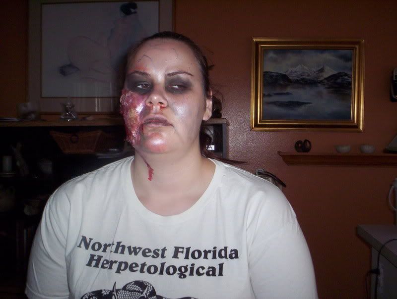 I was a victim from Snakes on a Plane for halloween. Forgive my sour expression; I had been up since 5am to get all that stuff on me. Blech.