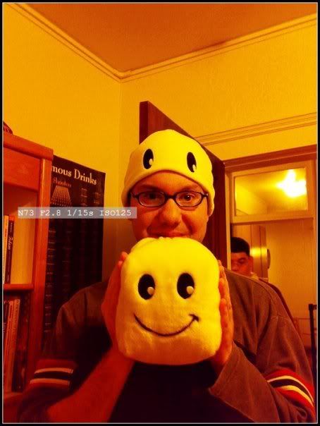 Half an hour ago or so - a crappy phone pic of me looking kinda goofy and tired after work.