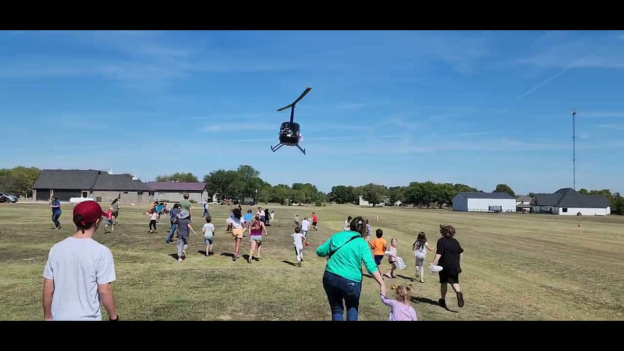 The way they did it at the local minor league baseball park was to keep the kids behind a rope as the candy was dropped. Once all of the candy had hit the ground and the helicopter had flown away they unleashed the kids.