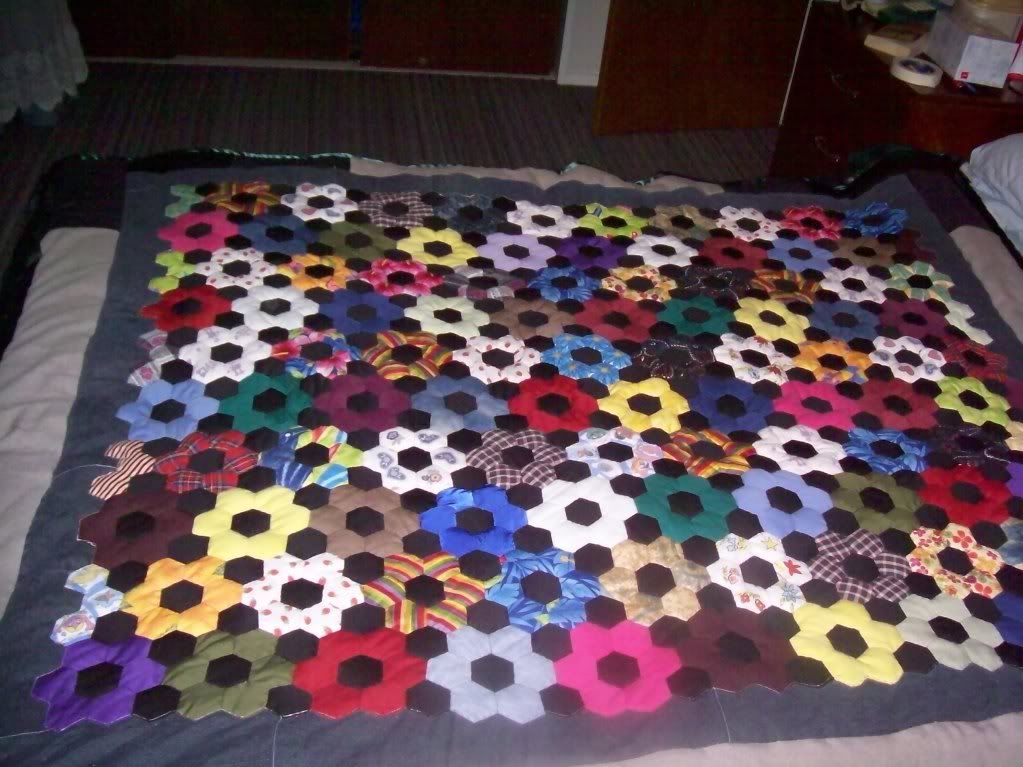 Wow maggenpye, that quilt is spectacular! I’ve never seen hexagons done with black before, and I like the way it brightens it up.