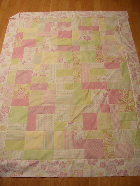 Here’s a quilt top I just finished. If a friend of mine’s baby turns out to be a girl, I might give it to her. Or it might wait for some other day. I think I’m going to send it out to be quilted, so it will be done in a jiffy.