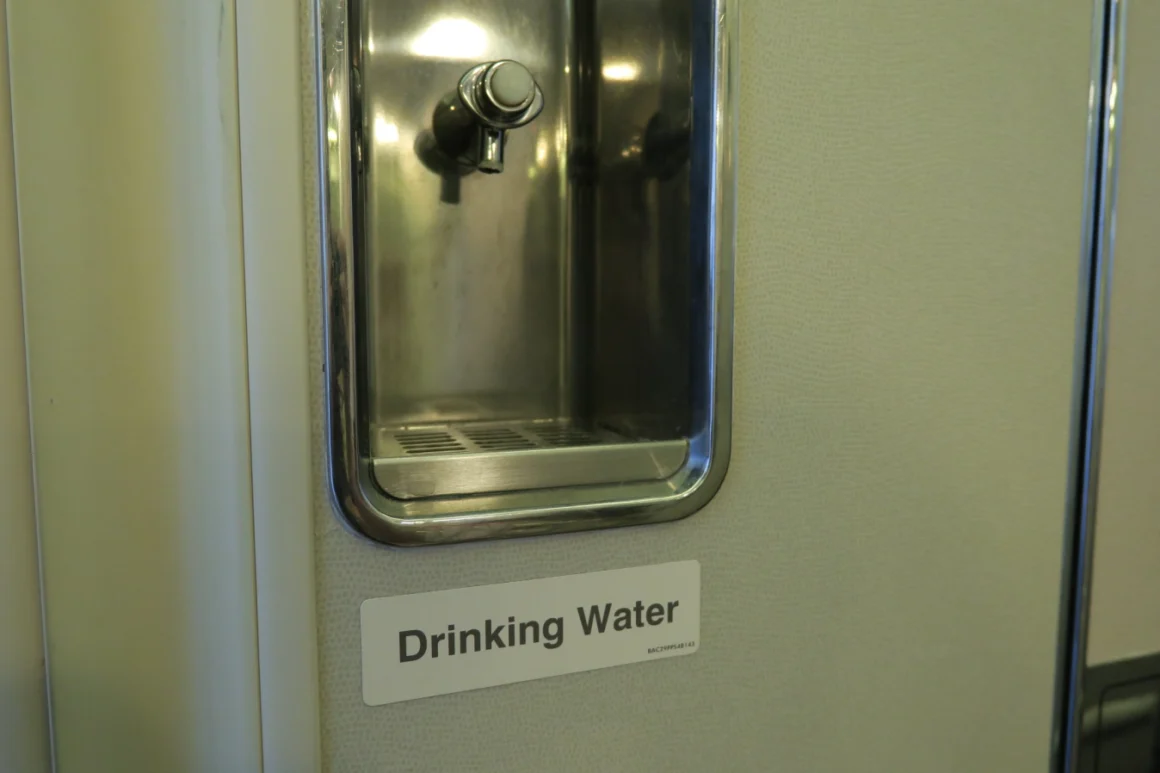 Whether there’s a water dispenser varies by airplane model and era.