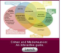 I have to chuckle. There are – how many? – threads on this boards beseechingly exploring the possibility that Bush can be jailed for something, anything. Hard-core civil libertarians are willing to throw out any notion of Due Process if it just means getting George “Satan” Bush behind bars.
